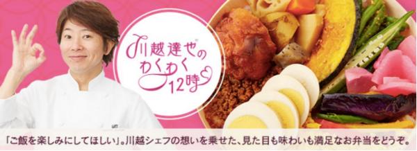 川越達也シェフの出身地である故郷「宮崎(九州)」の食材と、イタリアンを組み合わせ、川越シェフが考える「ごはんが"もりもり"進み、目で楽しんでいただける彩りのお弁当」をめざし、「ごちクル」開発スタッフとともに打ち合わせや試作を何度も重ね、「川越達也のわくわく12時」(お弁当店)を完成させました。会議・研修用から大切なシーンまで幅広いシーンでご利用いただくことを想定し、全8種での展開といたしました。総合モール「ごちクル」での取り扱いのほか、「シャショクル」でも販売いたします。
