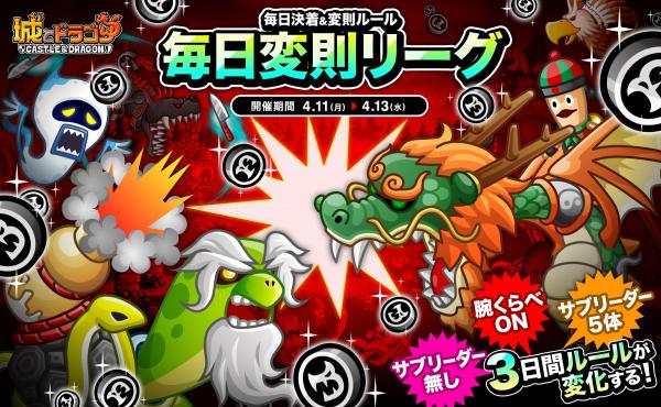 「毎日変則リーグ」はリーグのルールが毎日変わり、ランキング報酬のドラゴンメダルが毎日もらえます。