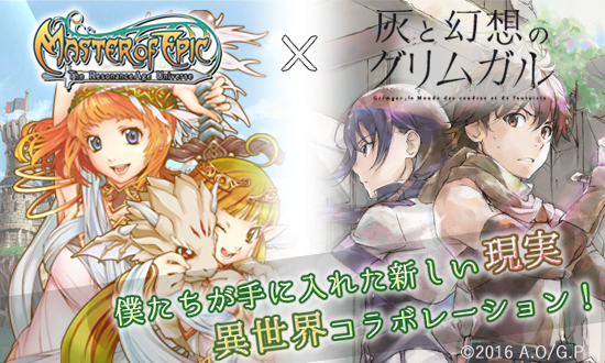 オンラインRPG『Master of Epic』にて、TVアニメ『灰と幻想のグリムガル』とのコラボアイテムのリリース、コラボイベント実施中です。