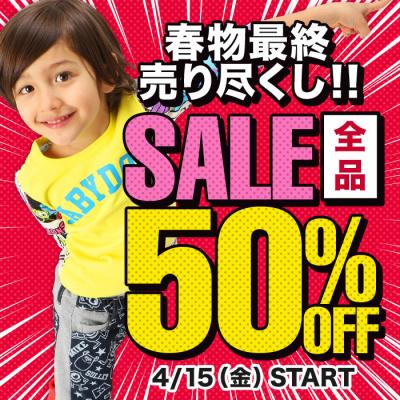 株式会社コージィコーポレーションが運営するベビー・キッズ服ブランドBABYDOLL(ベビードール)がBABYDOLL・STARVATIONS(スターベイションズ)各店、通販各店にて、4月15日(金)より<再値下げ!春物セール全品50%OFF>を開催します。