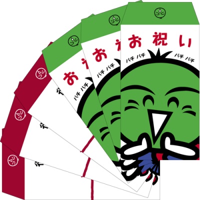 昨年末に販売した徳島県のマスコットキャラクター「すだちくん」のポチ袋(お年玉用)の好評を受け、「すだちくん」については御礼・お祝いといった通年使える新しいバージョンを発売。