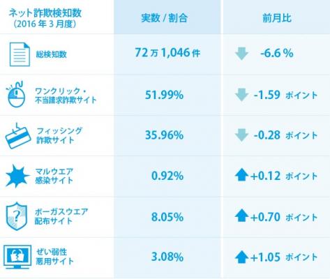 BBソフトサービス(BBSS)の「Internet SagiWallTM(インターネットサギウォール)」で検知したデータを基にした、2016年3月度のインターネット詐欺リポートです。