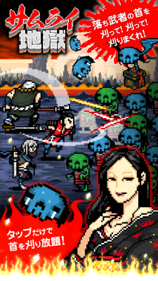 画面をタップすることで、落ち武者を攻撃することができ、敵を倒せば首が手に入ります。