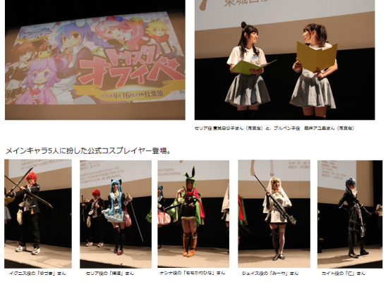 藤井アユ美さん(ブルペン子役)と東城日沙子さん(セリア役)をMCに迎え、PCオンラインゲーム時代のスクリーンショットを交えた映像上映や、公式コスプレイヤー登場、開発陣による開発秘話や新情報公開、「次元の扉」挿入歌披露、プレゼント抽選会などを行いました。