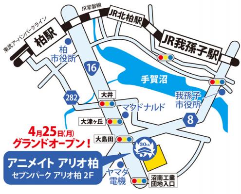 アニメ・コミック・ゲームの専門店 「アニメイト」は、2016年4月25日、千葉県柏市に新たにオープンする地域と一体となり、毎日をいきいきとさせる喜びや安らぎを紡ぎ出していく『セブンパーク アリオ柏』内2階に新店舗をオープンいたします。