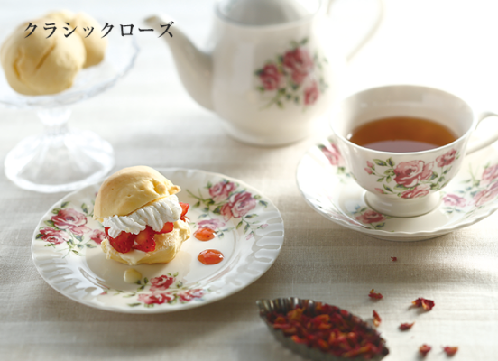 「クラシックローズ」は岐阜県土岐市で作られる美濃陶磁の伝統工芸技術を取り入れた食器シリーズで、アンティークのようなクラシックな高級感が華やかな時間をお届けします。