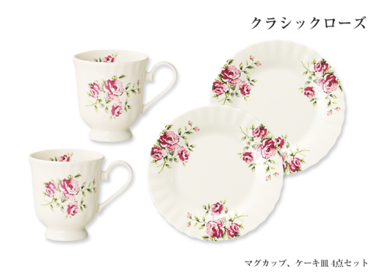 ●クラシックローズ マグカップ、ケーキ皿 4点セット~陶磁器の町、土岐市の食器~