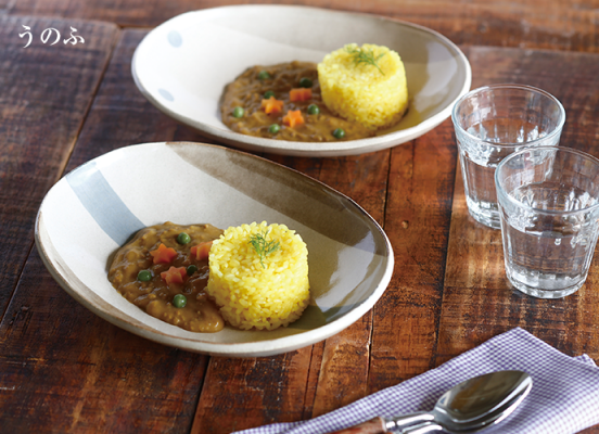 「うのふ」は岐阜県土岐市で作られる美濃陶磁の伝統工芸技術を取り入れた食器シリーズで、卯の斑(うのふ)という釉薬(うわぐすり)を使い、温かみのある柔らかい白が食卓に映えます。和洋問わず使えるシリーズです。