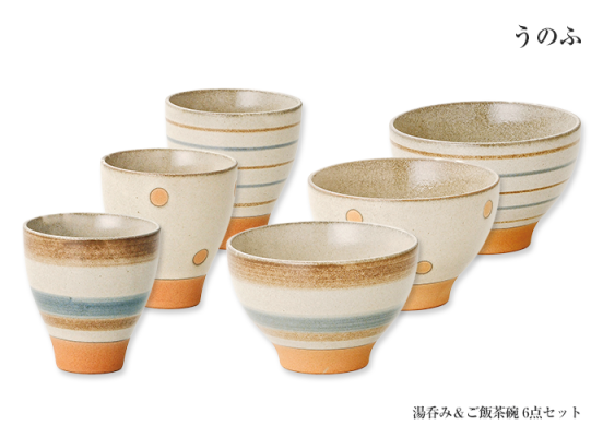 ●うのふ 湯呑み&ご飯茶碗 6点セット~陶磁器の町、土岐市の食器~