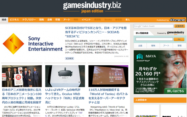 「4Gamer.net」では、最新ゲーム情報はもとより、ゲーム業界動向や技術トレンド、ゲームエンジン・ミドルウェアといった開発情報、各社決算情報等の業界情報も配信していることから、ゲームユーザーのみならず、開発者やマーケティング担当者などのゲーム業界関係者からも高い関心を集めており、その情報に対する需要が拡大しています。このため、欧州最大級のゲーム業界情報サイト「GamesIndustry.biz」との連携により、さらに広い視点の業界情報を結集すべく、この度、ゲーム業界動向及び技術トレンドに関する情報を集約したサイト「GamesIndustry.biz Japan Edition」を新たに立ち上げ、本日オープンいたしました。