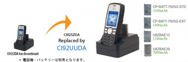 zCover CI92UUDA-JP デスクトップ・デュアル・チャージャーセットは、Cisco 7926G/7925G/7925G-EX IP電話機の本体とバッテリーパックを同時に充電できる充電器です。