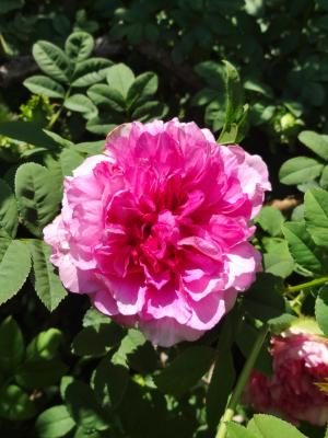原種系のバラで病気に強い品種です。淡紅紫色をしており、約100枚を越える見事な八重咲きの花を咲かせます。