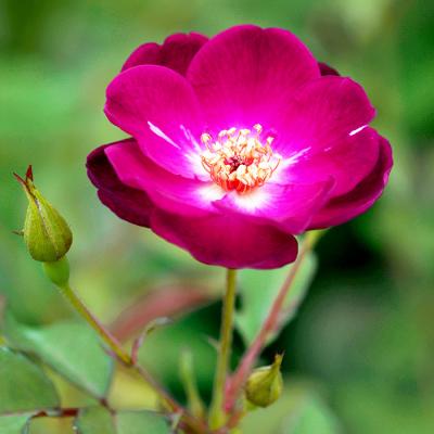 四季咲きで、赤色から紫赤色をしており、花径で 5センチほどの花を咲かせます。江戸時代中期から続く、旧家の庭で発見されたチャイナローズです。