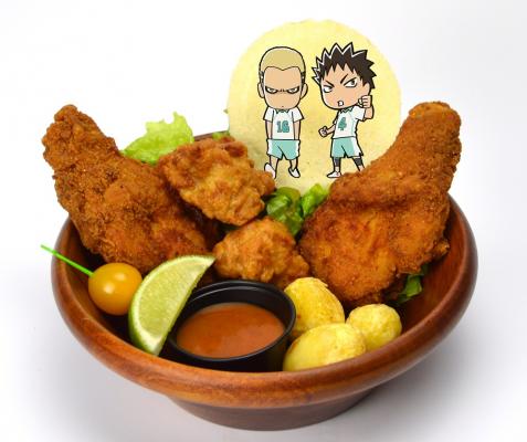 ダブルチキンウイングと京谷の好物の一つ、「かりゃあげ君」を盛り込んだBOWLです。