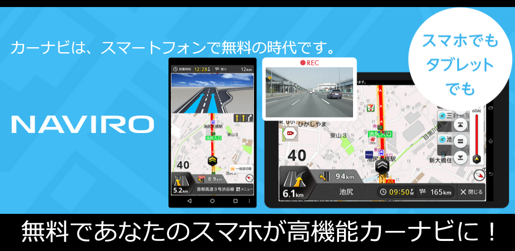 ナビローはVICS渋滞規制情報、最新地図更新、駐車場満空情報、ドライブレコーダー、オービス・取締り情報、ARモード、バイクモードがすべて無料で利用できるカーナビゲーションに特化したスマートフォンアプリです。