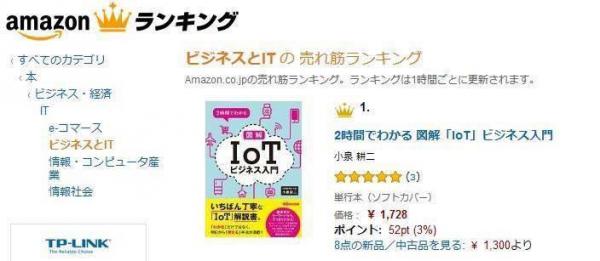 株式会社あさ出版(東京都豊島区池袋/代表取締役:佐藤和夫 http://www.asa21.com )は、『2時間でわかる図解「IoT」ビジネス入門』著者小泉耕二が、4月22日にアマゾンストアにて『ビジネスとIT』のカテゴリーで1位を獲得致しました。