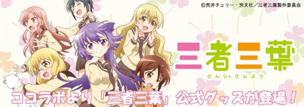 株式会社キャラバン(本社:東京都港区、代表取締役:東 貢一郎、以下 キャラバン)は、同社の運営するECサイト『ココラボ(http://www.cocollabo.net/)』にて、TVアニメ『三者三葉』のグッズを2016年4月22日より販売開始しました。