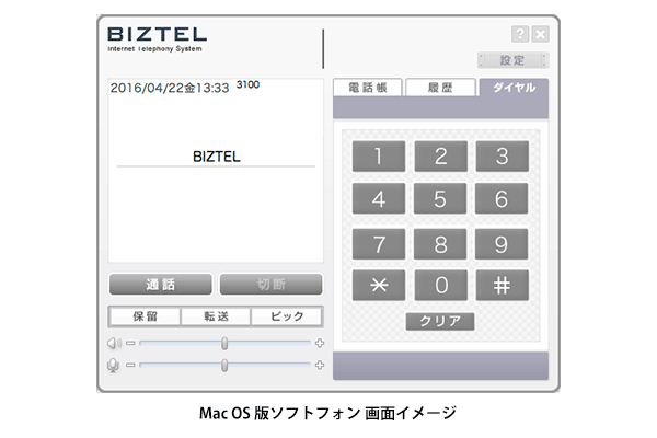 ・提供機能:発信/着信、保留・転送、電話帳、履歴表示等、Windows版ソフトフォンと同様
