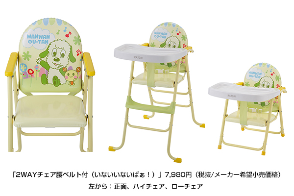 株式会社カトージ(本社・愛知県犬山市、代表取締役社長・加藤浩一)は、NHK Eテレで放送中の乳幼児向けの教養番組「いないいないばぁ!」の2wayチェア『2WAYチェア腰ベルト付(いないいないばぁ!)』を4月下旬から順次、全国のアカチャンホンポで発売いたします。生活シーンに合わせてハイチェア、ローチェアの2通りの使い方ができる便利な2WAYチェアです。同じくNHK Eテレで放送中の4-6歳児を対象とした教育エンターテイメント番組「みいつけた!」のキャラクター『コッシーの木製チェア』も好評発売中。こどもの日のプレゼントにお勧めです。