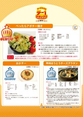 チーズ普及協議会(東京・千代田区、西尾啓治会長)と日本輸入チーズ普及協会(東京・千代田区、本村直之会長)が共催する「チーズフェスタ」では、チーズメニューの普及を目的とするレシピコンテスト「チー1グランプリ」を毎年開催し、全国から多くのご応募をいただいております。