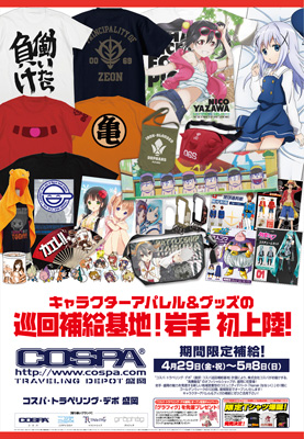 2016年4月29日(金・祝)~5月8日(日)の期間限定で、コスパ オフィシャルショップ『コスパ・トラベリング・デポ盛岡』が岩手県に初登場となる。