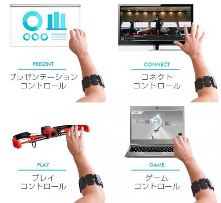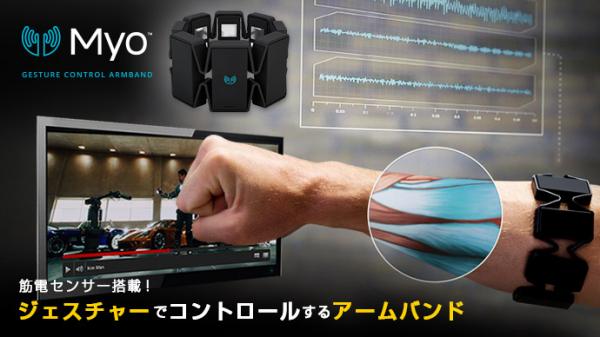 筋電センサーを搭載したマルチジェスチャーバンド「Myo(マイオ)」は、腕の筋肉の電気信号を検知し、腕、手首、指のジェスチャーでワイヤレスコントロールを可能にします。
