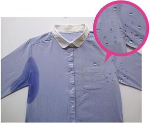 (6)汗や汚れが滲み込みやすい襟や袖口などに使用すると、汗や汚れの浸透を抑え汚れ落としが楽になり、汗や汚れによる黒ずみや黄ばみも防げます。
