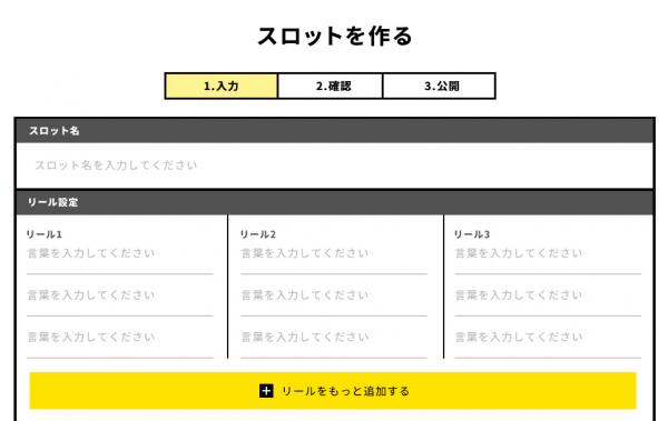 PCからでもスマホからでも、スロットにしたい言葉を入力していくだけで、かんたんにあなただけのスロットを作ることができます。