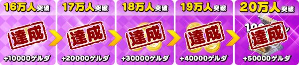 (2)20万人突破記念の50000ゲルダ+100ハルコン