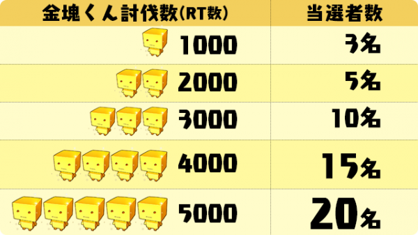 討伐数に応じてギフトコード(iTunesもしくはGoogle Play 1,500円分)の当選者数が最大20名までアップします。