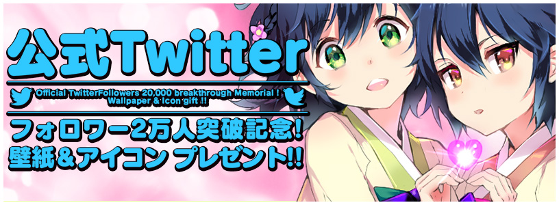 公式Twitterのフォロワー数2万人突破を記念し、壁紙とTwitterアイコンをプレゼントいたします。
