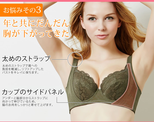 当社の「脇肉キャッチャー(R)」は、ブラジャーからはみ出す「脇肉」をカップに収めてバストを整え、背中をスリムに見せてくれる補整ブラジャーです。市場としてはまだ認知度が低かった「脇高ブラ」の先駆けとして、2010年に発売されて以来、おもに出産・授乳を経験してバストの下垂やサイズが小さくなったと感じる女性を中心にご好評いただいています。
