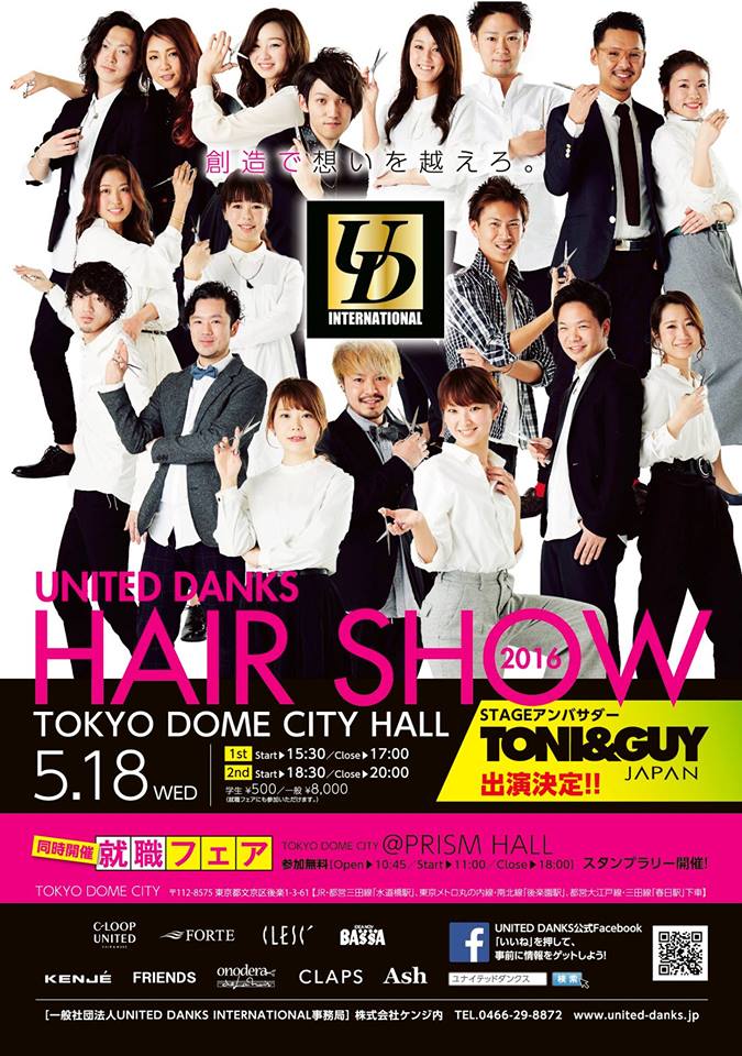 「UNITED DANKS HAIR SHOW 2016」は一般社団法人 ユナイテッド・ダンクス・インターナショナル(注1)を中心に企画運営され、今年で15回目の開催となります。2005年をピークに年々減少している美容学生向けに開催されるイベントでは、自社の技術力をヘアショーにてアピールし、就職フェアでは企業の魅力をアピールして美容学生の獲得を狙います。