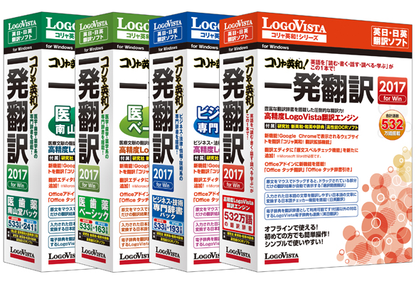 言語学の世界的権威 ハーバード大学の久野名誉教授の理論に基づき開発された「高精度 LogoVista翻訳エンジン」を搭載。翻訳精度に重要な辞書語数も532万語を搭載。また、ビジネス・技術専門辞書パック、医歯薬ベーシック、医歯薬南山堂パックは533万語を搭載しています。もちろん、ご自身で辞書に単語を登録しカスタマイズすることで、より適切な翻訳結果を得ることも可能です。
