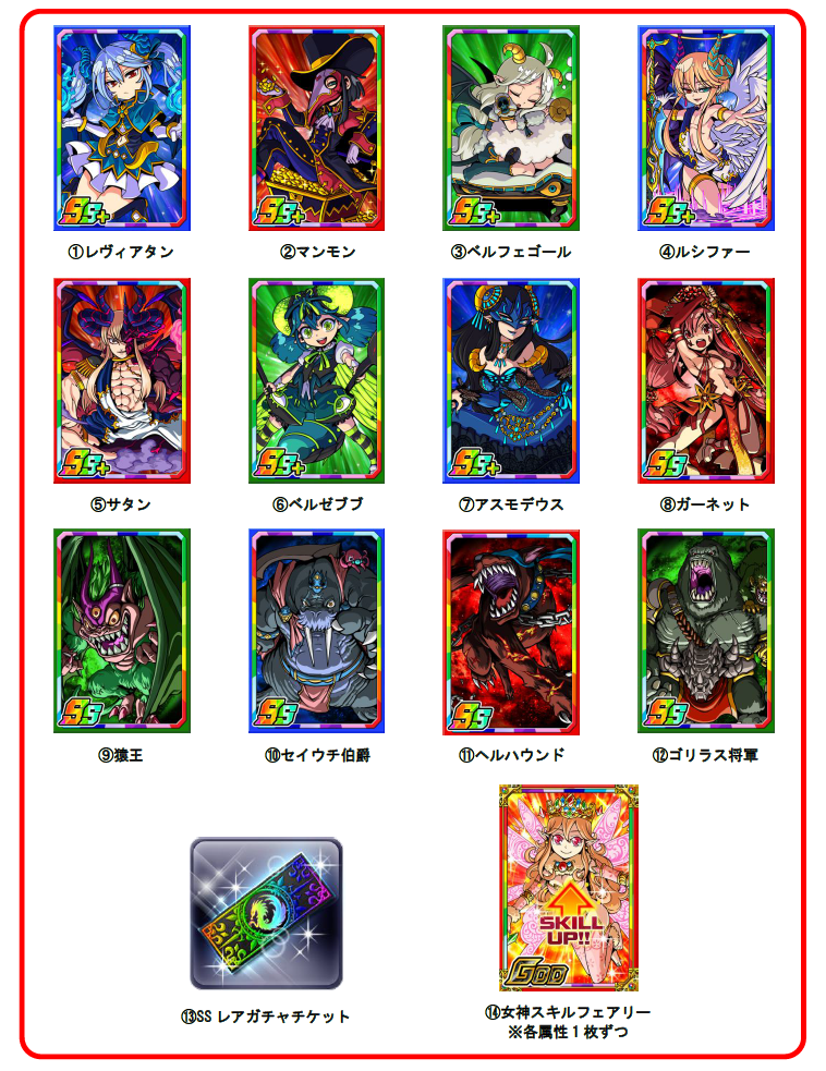 ※「レアガチャチケット」「Sレアガチャチケット」でSSレアが出現した場合、コスト28以下のSSレアとなります。