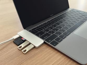 全体サイズ84mm×28mm、8.4mmの薄さ、48gの超軽量USBタイプのHUB。ランプ機能が付いており、MacBookとの接続状況が一目で分かりやすい。別途のソフトウェア設置などを行う必要がなく装着するだけで安定的な高速充電をしながら他デバイスをお使いのMacbookで読み込み可能。