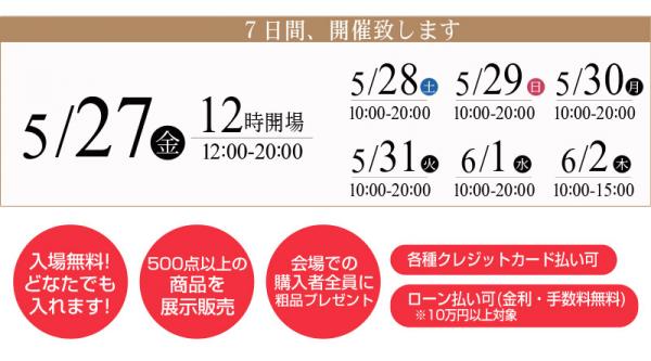 クロコダイル、オーストリッチ、パイソンなどの本革の財布やバッグ、高級毛皮のコートなど500点以上の商品を展示販売致します。