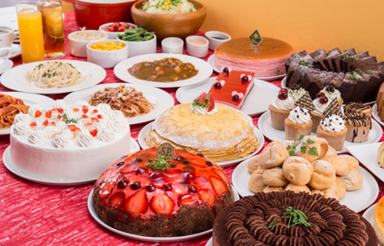 食べ放題メニューは、30種類以上のスイーツに、モチモチの自社配合の生パスタをはじめ、数十種類のドリンク、カレーやサラダバーなどの軽食までバラエティに富んだ内容で、スイーツ以外に食事も十分に満足できます。他にも店舗によりチョコファウンテン、和菓子、ソフトクリームや、月ごとのマンスリースイーツやフードも充実しています。