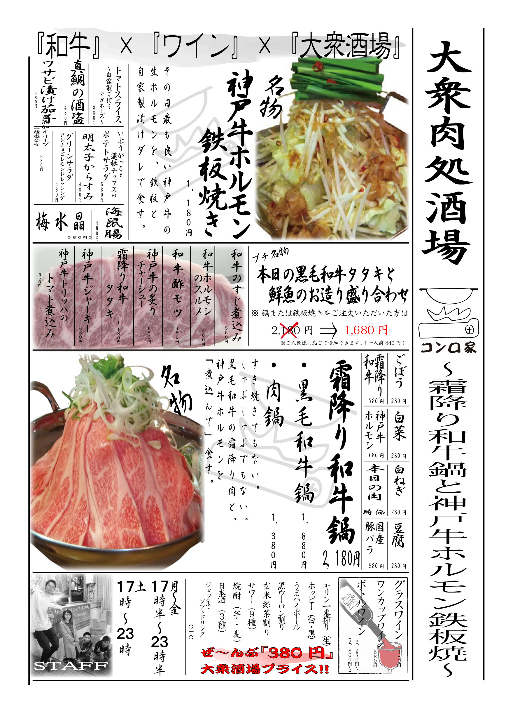 大衆肉処酒場“コンロ家”~霜降り和牛鍋と神戸牛ホルモン鉄板焼~