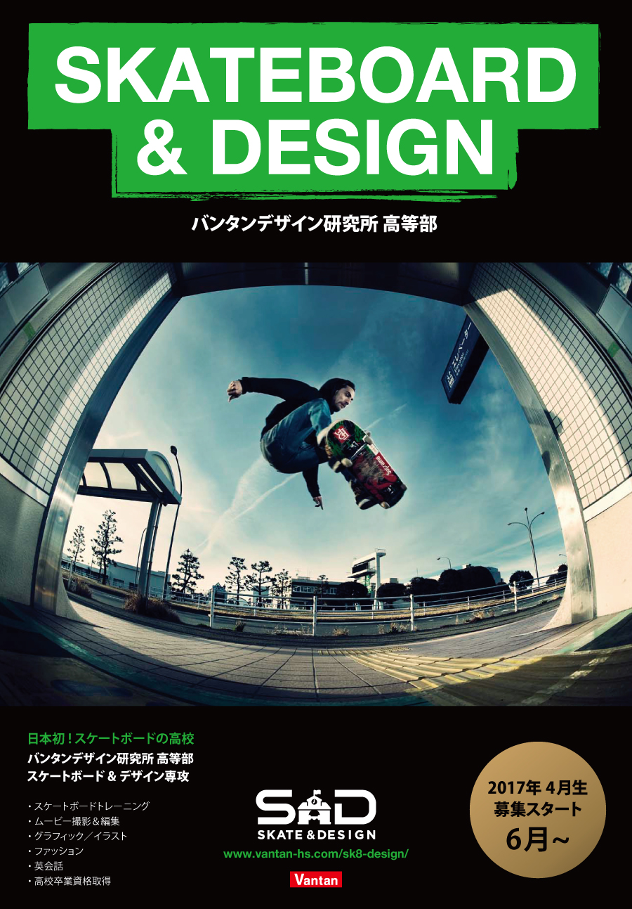 『VANTAN DESIGN HIGH SCHOOL スケートボード&デザイン専攻』は、日本から世界に飛び出すプロスケーターの育成と、スケートボードを通して学べるカルチャー(ファッション・イラスト・グラフィック・映像編集など)を武器に将来業界で活躍できる人材を育成する事で、日本におけるスケーターの価値を高める主旨のもと、開講を決定いたしました。