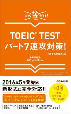 株式会社あさ出版(東京都豊島区池袋/代表取締役:佐藤和夫 http://www.asa21.com )は、『【新形式問題対応】これだけ! TOEIC TESTパート7速攻対策!【音声ダウンロードサービス付】』著者赤井田拓弥、 Jeffrey M. Bruceが、5月15日にキンドル電子書籍から配信が始まりました。