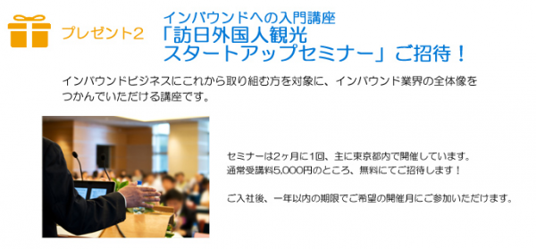 【プレゼント2】 インバウンド入門講座「訪日外国人観光スタートアップセミナー」にご招待!