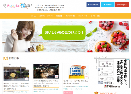 グルメ関連の情報ポータルサイト『おいしいもの探し隊!』