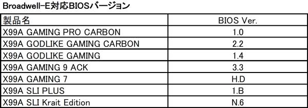 MSIが4月以降に出荷した下記製品に関しては、すべてBroadwell-Eに対応したBIOSを搭載しております。