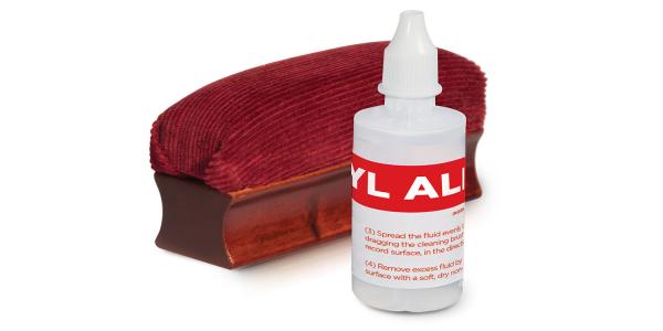 握りやすい木製グリップのついたベルベットのクリーニング・パッドと専用の洗浄液で、