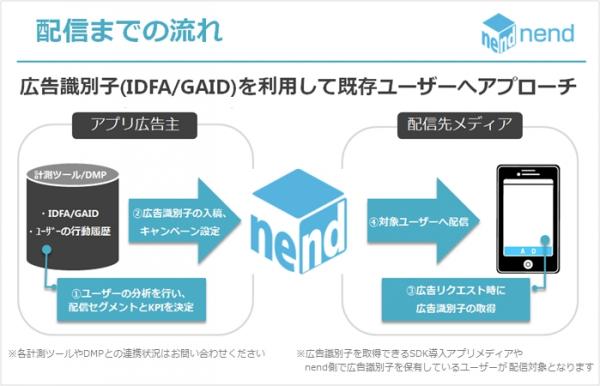インターネット広告事業を展開する株式会社ファンコミュニケーションズ(本社:東京都渋谷区、代表取締役社長:柳澤安慶 東京証券取引所市場第一部:2461)が運営する、国内最大級のスマートフォン向け運用型アドネットワーク「nend(ネンド)」< http://nend.net/ >は、2016年5月30日より、アプリ広告主が持つ広告識別子を利用し既存ユーザーへの広告配信が可能となる、「アプリエンゲージメント広告」の提供を開始いたしました。