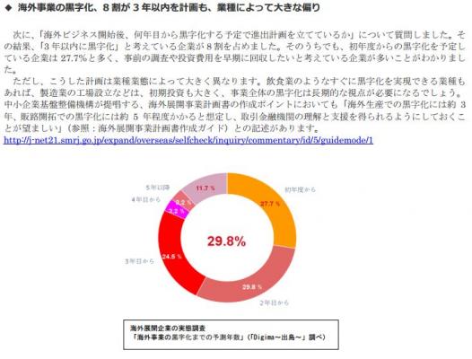 - 海外事業の黒字化、8割が3年以内を計画も、業種によって大きな偏り