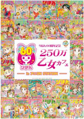 株式会社ナムコは、アニソン(*1)を通じて作品やアーティストなどのファン同士が一体感を共有できる施設『アニON STATION』(*2)で、「りぼん」(*3)創刊60周年を記念し、『りぼん60周年記念 250万乙女(*4)カフェin アニON SATION』を、渋谷/大阪/の2都市にて2016年6月11日(土)から7月12日(火)の期間限定で開催します。