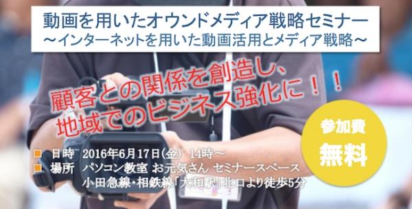 一般社団法人健康コンシェルジュ日本(本部:神奈川県大和市 理事長:藤田満穂)は、2016年6月17日(金)に『動画を用いたオウンドメディア戦略セミナー ~インターネットを用いた動画活用とメディア戦略~』を開催いたします。