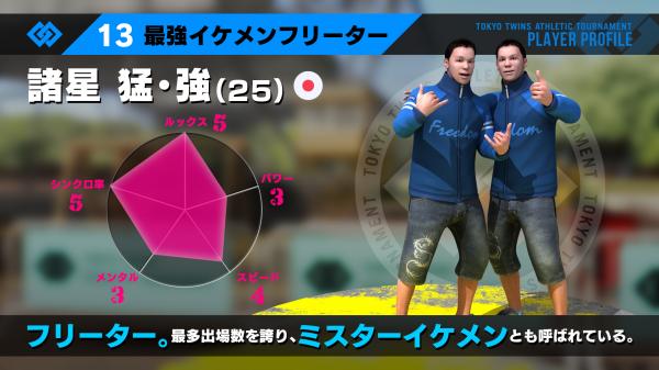 予選を勝ち抜いた個性豊かな選手たちが、東京湾に浮かぶ人工島で開催される大会「東京ふたごアスレチック」に挑戦するというストーリー。タイトルの通り、本大会には“ふたご“しか出場することができない。